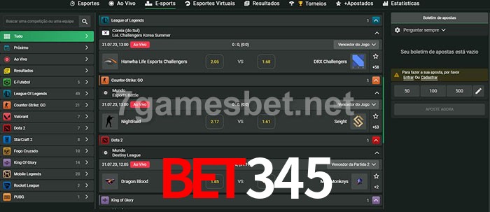 O bet345 oferece uma grande seleção de opções de apostas em e-sports com probabilidades competitivas